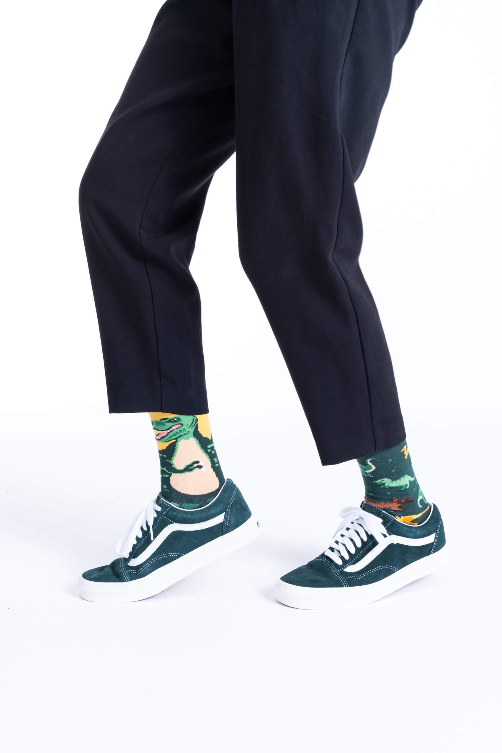 Celebra alcune delle creature più potenti che abbiano mai camminato sulla terra. Dal potente T-Rex ai giganti più gentili, i nostri calzini con motivi di dinosauri mettono il buon umore in ogni passo che fai. Mostra la tua abilità preistorica con i calzini The Dinosaurs e sarai rapidamente il proprietario di due piedi davvero feroci.