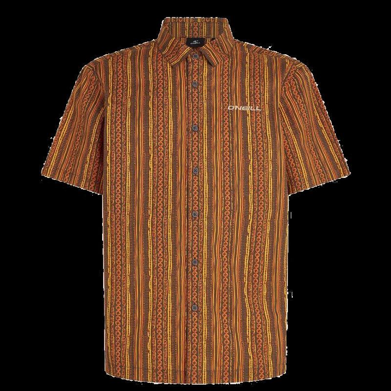 Camicia uomo manica corta - Men Print Shirt - Orange pressed lines