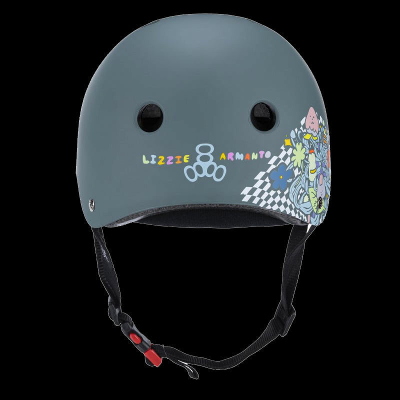 "Sono così entusiasta del mio nuovo casco di Triple Eight! L'intera collezione è stata divertente da creare ed è venuta anche meglio del previsto!" -Lizzie Armanto