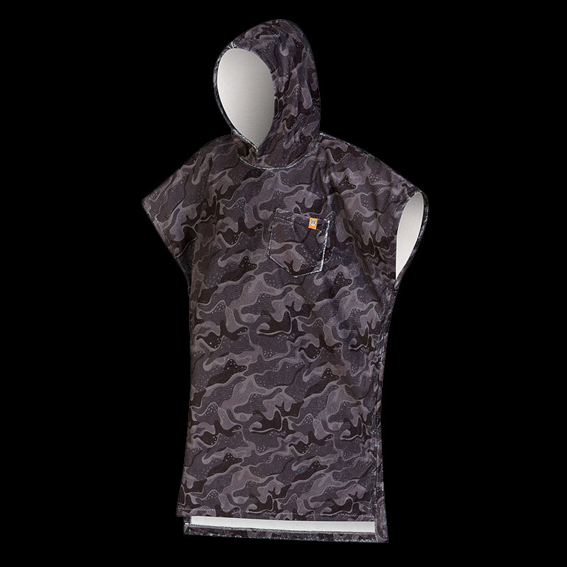Vuoi cambiare il resto in modo discreto nel parcheggio del tuo surf spot in città? Il Camo Print Deep Black è il poncho di cui hai bisogno. Il suo sottile motivo mimetico con colori tono su tono mostra un look urbano impegnato che mostra la tua intenzione di distruggere la prossima sessione. Aperture laterali, ampie maniche e cappucci ti rendono veloce ed efficiente prima e dopo il surf.