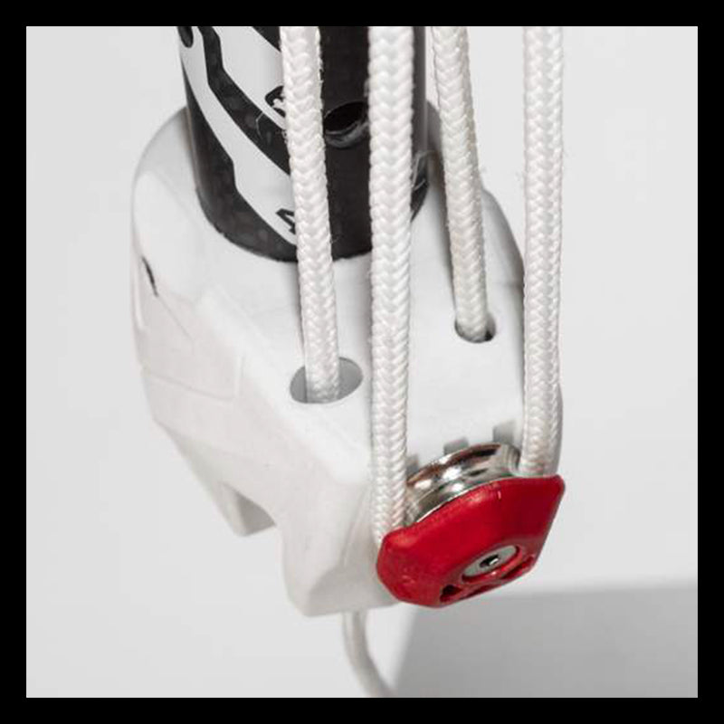 La prolunga CYCLOPS è dotata di una singola puleggia per un rapido montaggio loop 'n go. È sufficiente far passare l'anello di cima attraverso la puleggia di mura sulla vela e agganciarlo alla puleggia singola sulla prolunga. Un singolo tiro applica la massima tensione del caricabasso in pochi secondi.