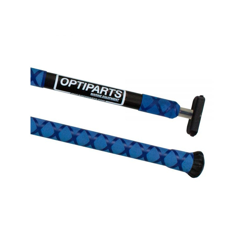Prolunga in alluminio con grip termorestringente e tappo terminale.Adatta per gli optimist, pesa solamente 150g. Snodo timone in gomma con cimetta di sicurezza interna. SE si rompe ti permette di finire la prova