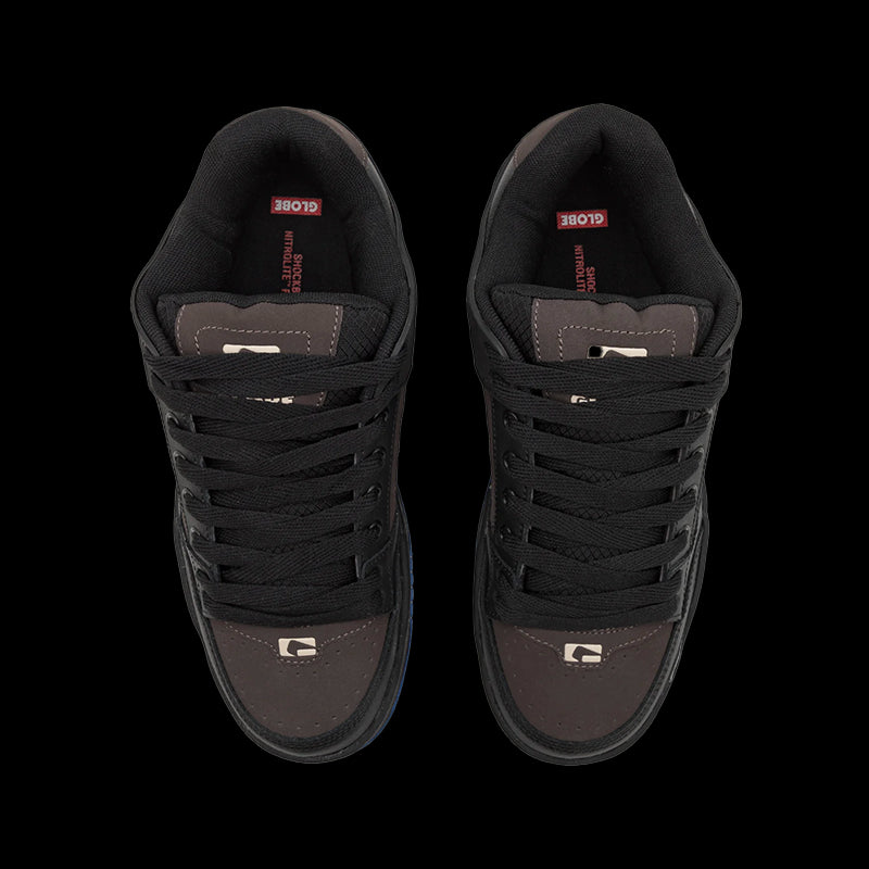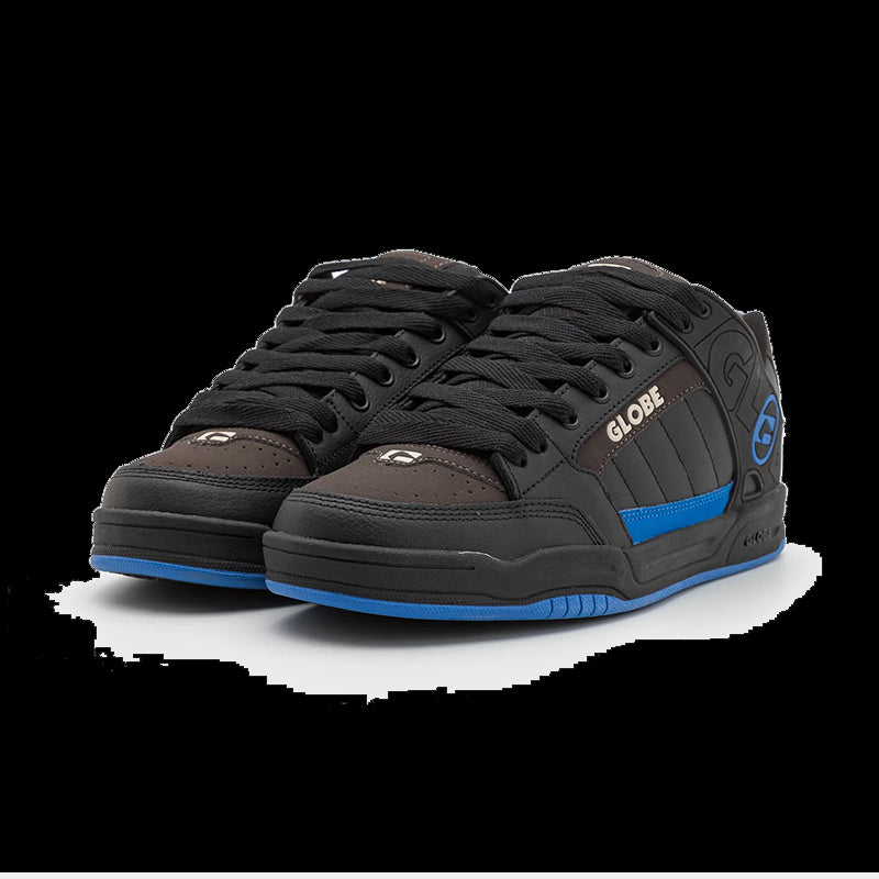 Il modello Tilt è la classica silhouette skateboard di Globe, caratterizzata da un collare esterno in TPR sagomato per il supporto e la durata, e dal disegno della suola S-Trac™ per una maggiore aderenza e sensazione sulla tavola.