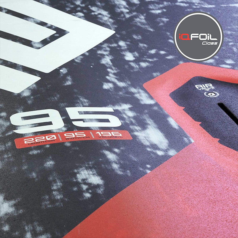 Tavola da regata foil olimpica. Larga 95 cm per un comodo trasporto aereo. Permette di regatare con vento a 5 nodi e oltre. Efficiente con vento leggero, controllabile con vento forte, convertibile in modalità pinna e costruita con la tecnologia originale in carbonio.
