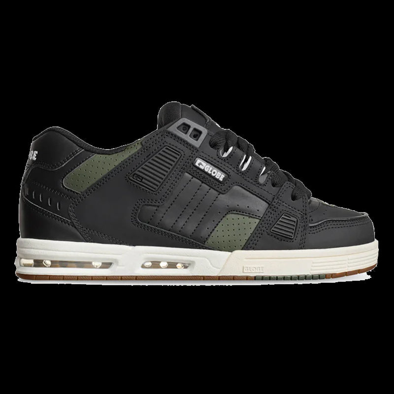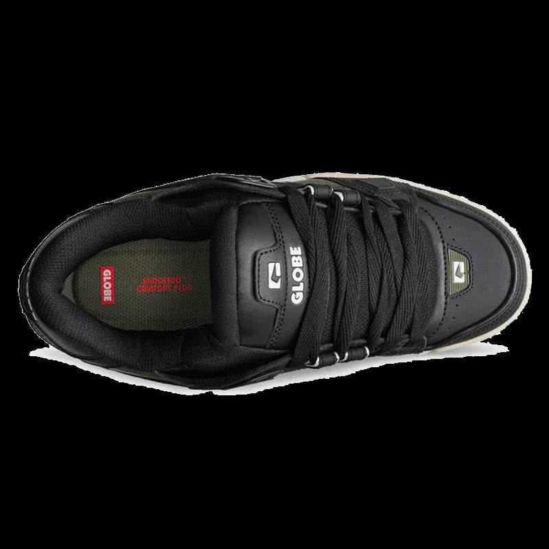 La scarpa da skate Sabre nel colore Black/Combat ha uno stile ultra resistente con una costruzione a calzino slip-on per comfort e stabilità con fodera step-in, suola con airbag Nitrocel e modello della suola S-Trac di Globe.