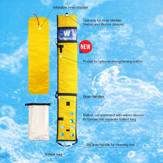 • Stabilità Personalizzabile: La sacca zavorra con chiusura in velcro (da riempire con sabbia o pietre) permette alla boa di mantenere la posizione verticale perfetta anche con vento forte. ⚓